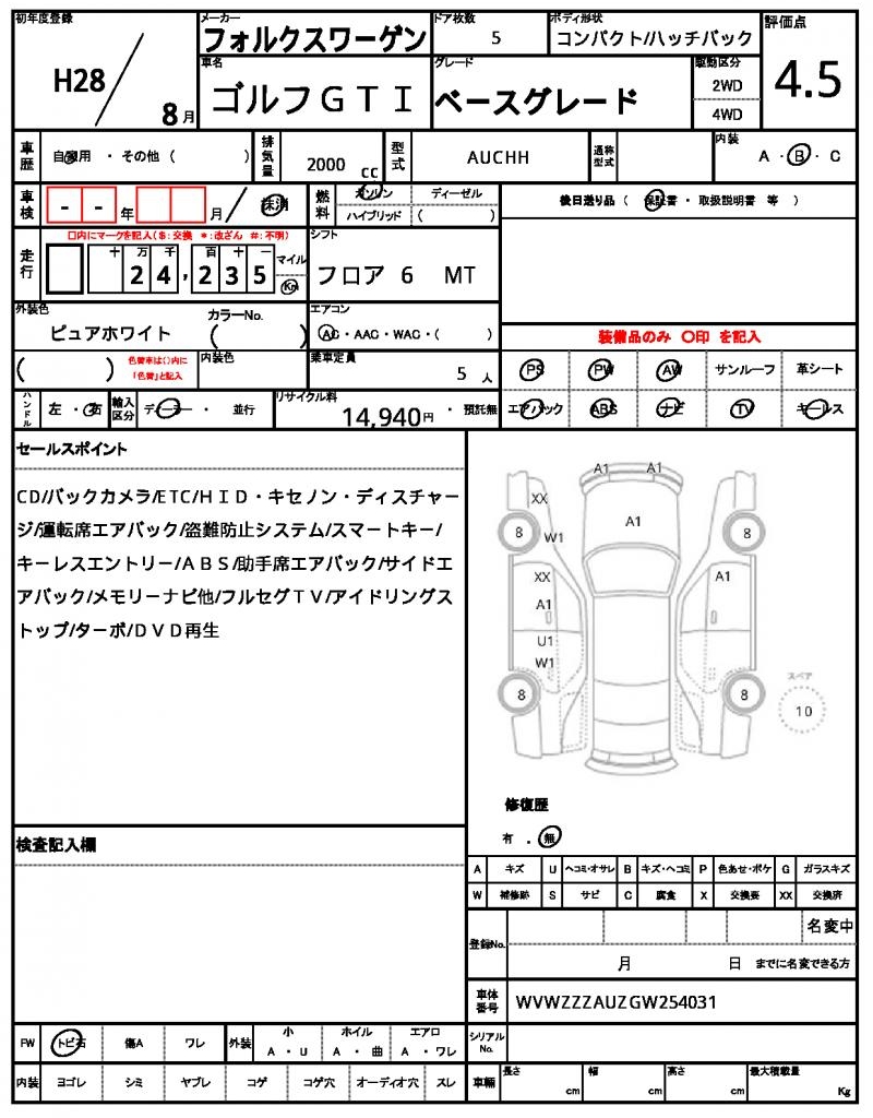 | VIN/Serial No. | WVWZZZAUZGW254031 |