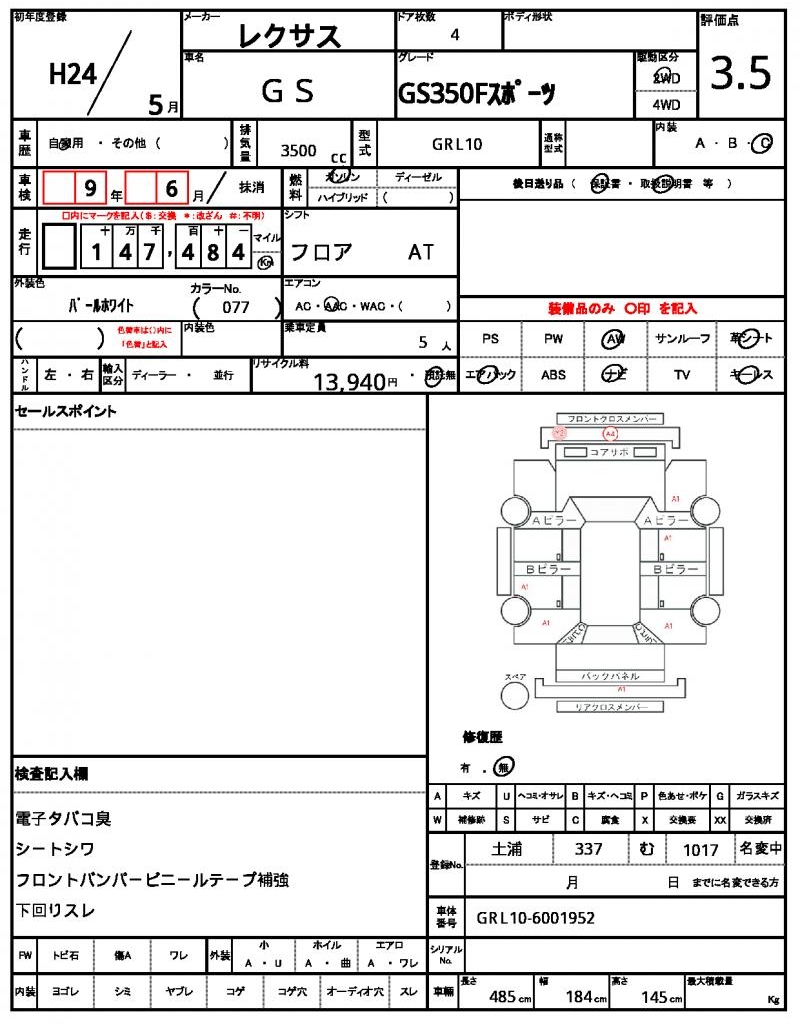 | VIN/Serial No. | GRL10-6001952 |