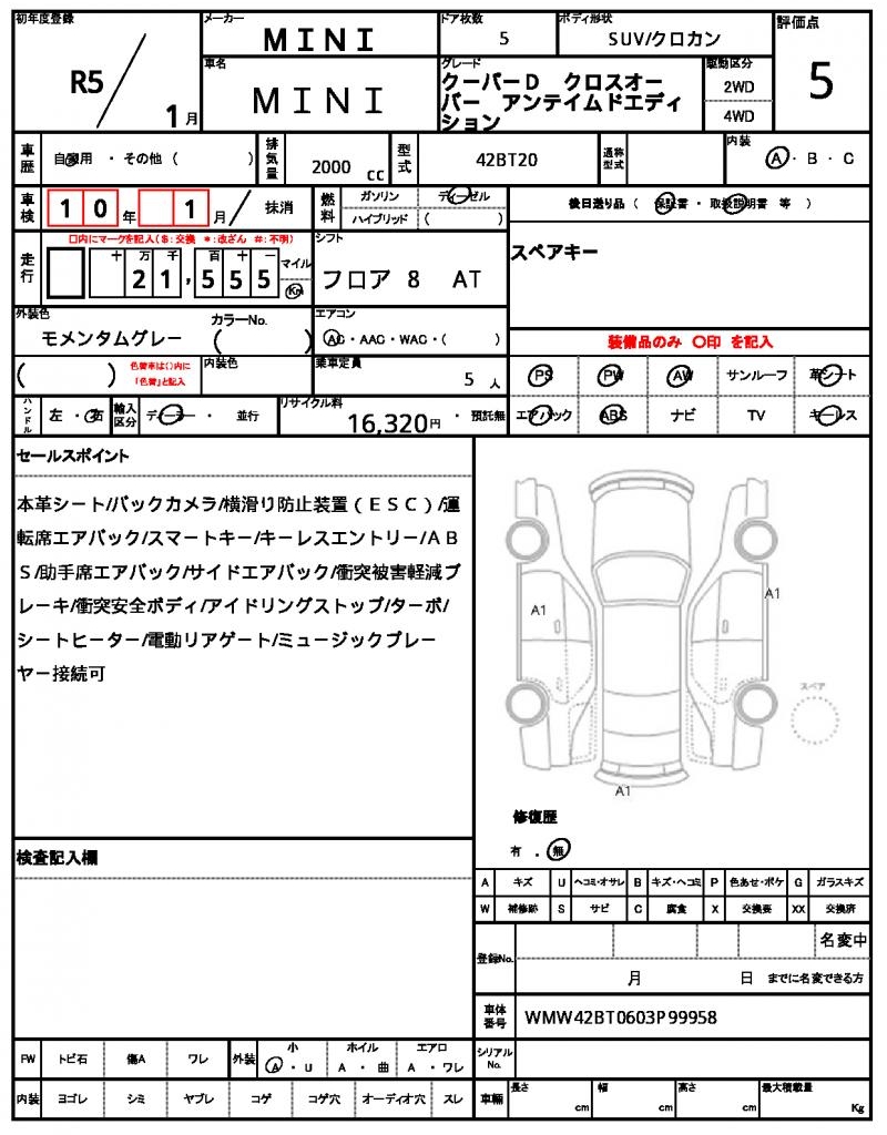 | VIN/Serial No. | WMW42BT0603P99958 |