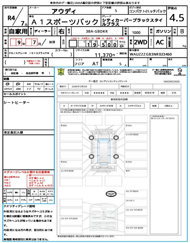 | VIN/Serial No. | WAUZZZGB3NR023460 |