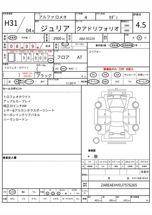 | VIN/Serial No. | ZAREAEHV0J7576265 |