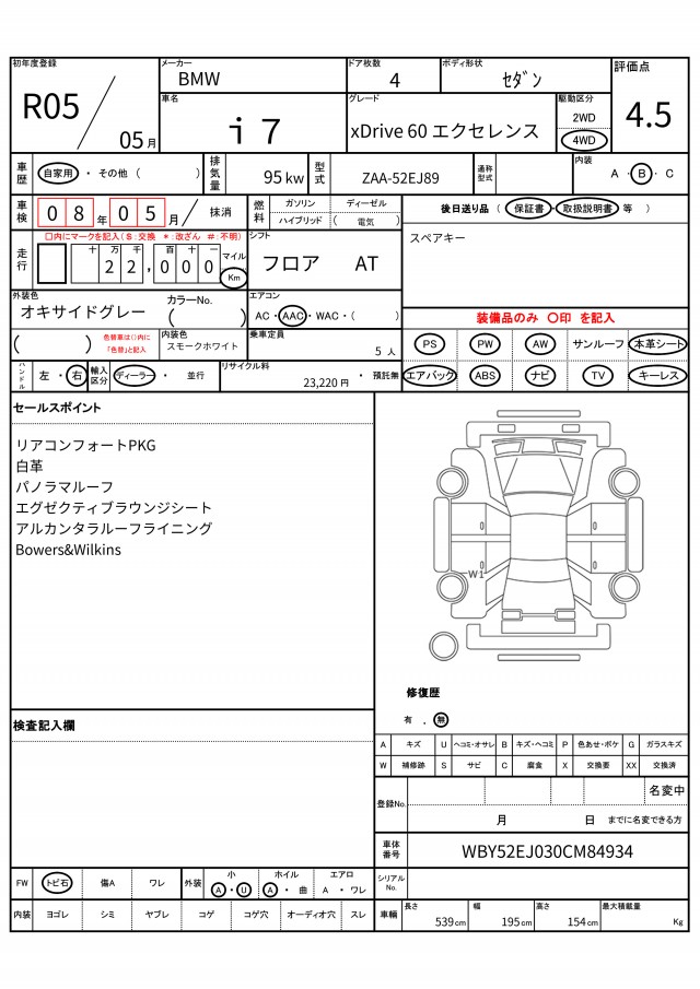 VIN/Serial No. WBY52EJ030CM84934
