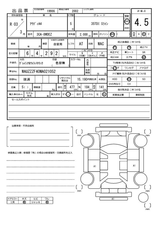 | VIN/Serial No. | WAUZZZF40MA021052 |