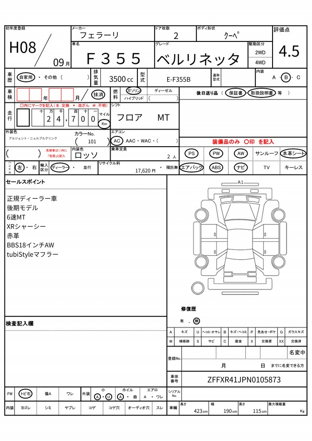 | VIN/Serial No. | ZFFXR41JPN0105873 |