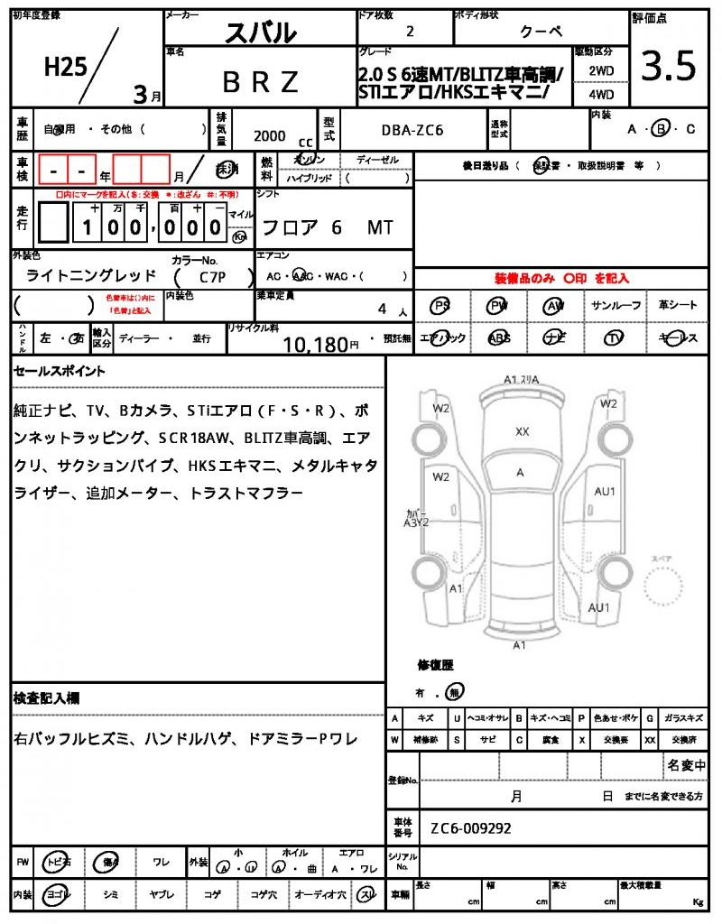 | VIN/Serial No. | ZC6-009292 |