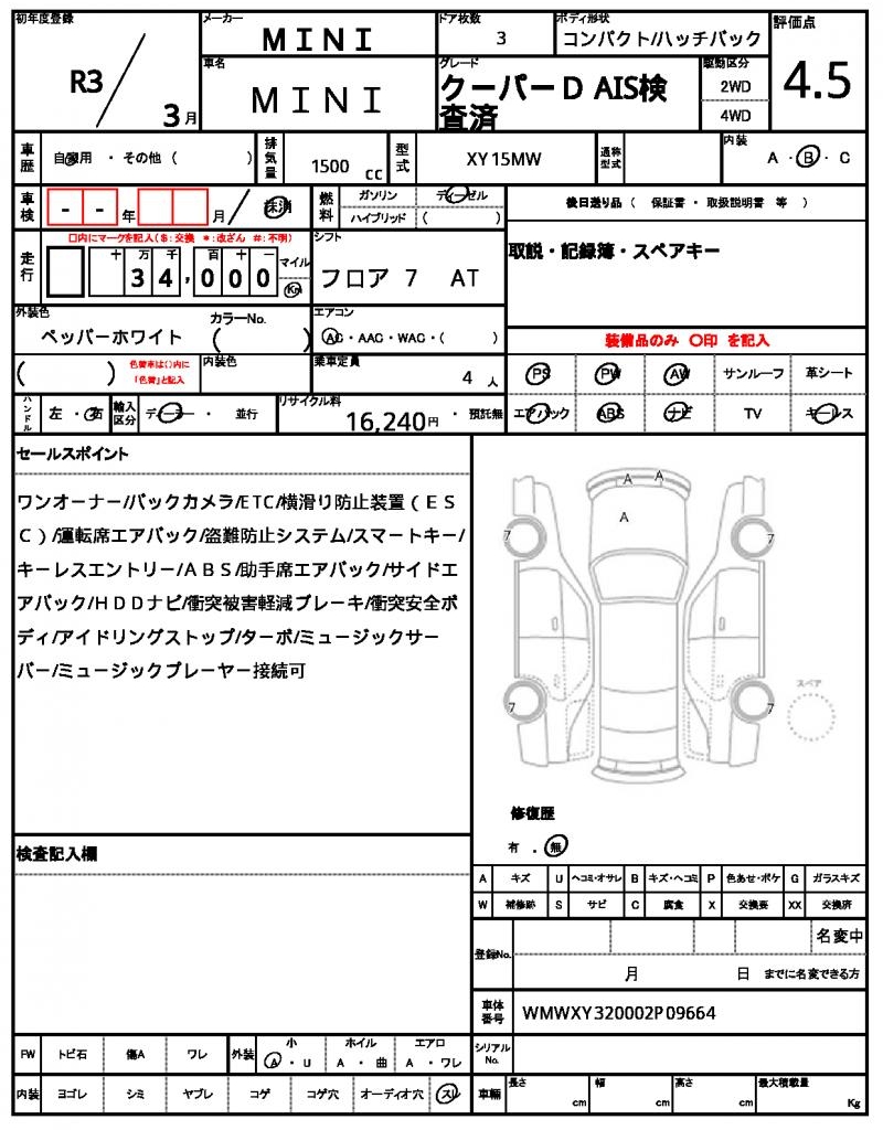 | VIN/Serial No. | WMWXY320002P09664 |
