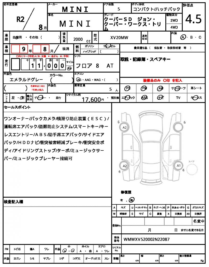 | VIN/Serial No. | WMWXV520002N22087 |