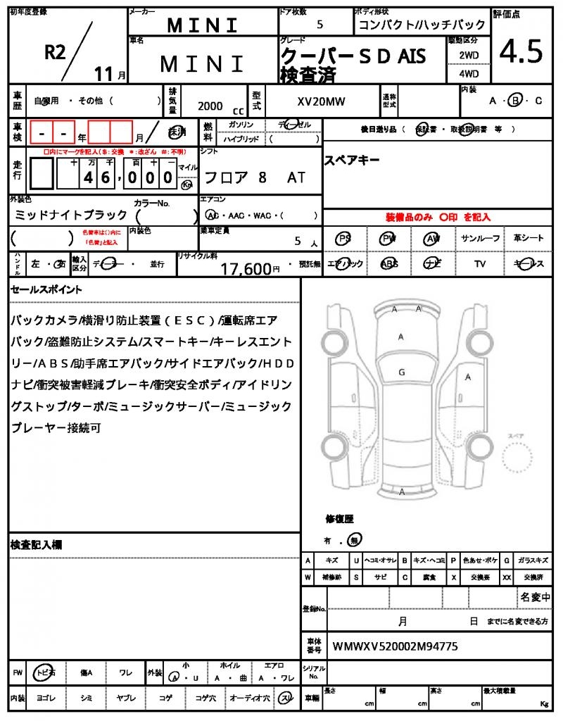 | VIN/Serial No. | WMWXV520002M94775 |