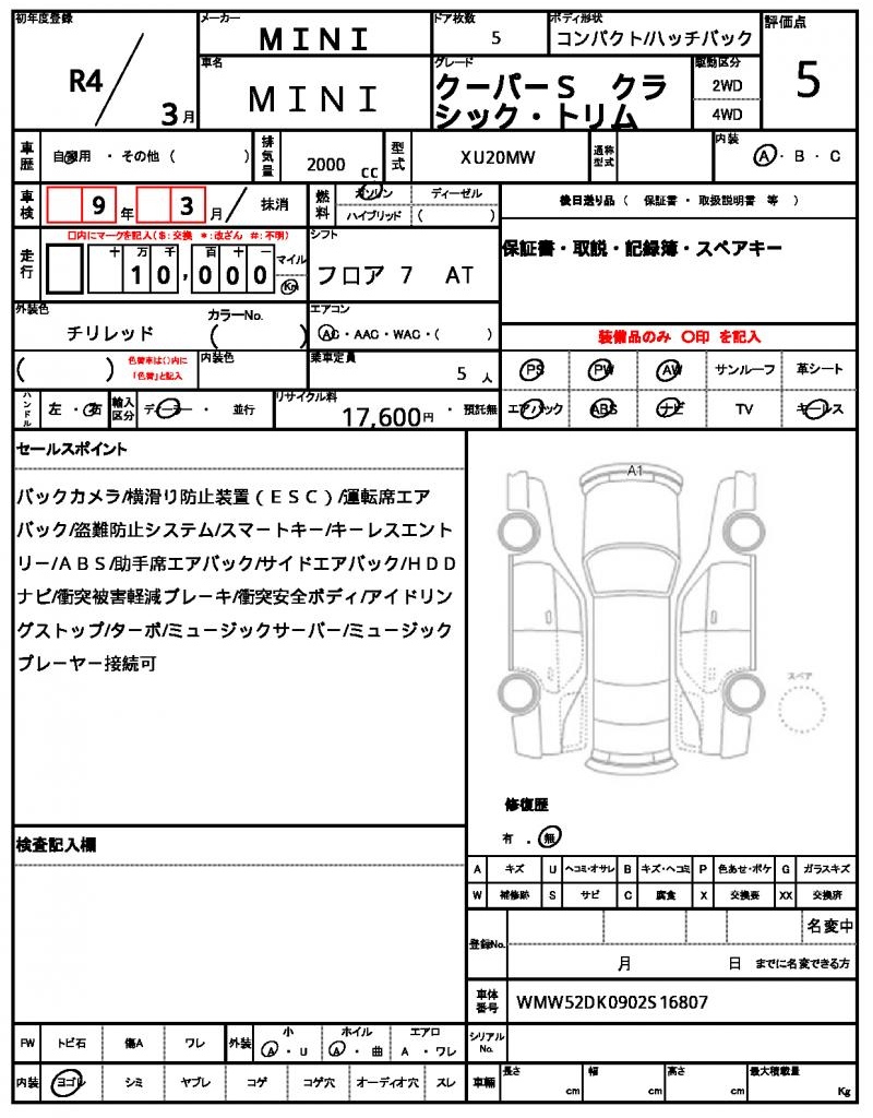 | VIN/Serial No. | WMW52DK0902S16807 |