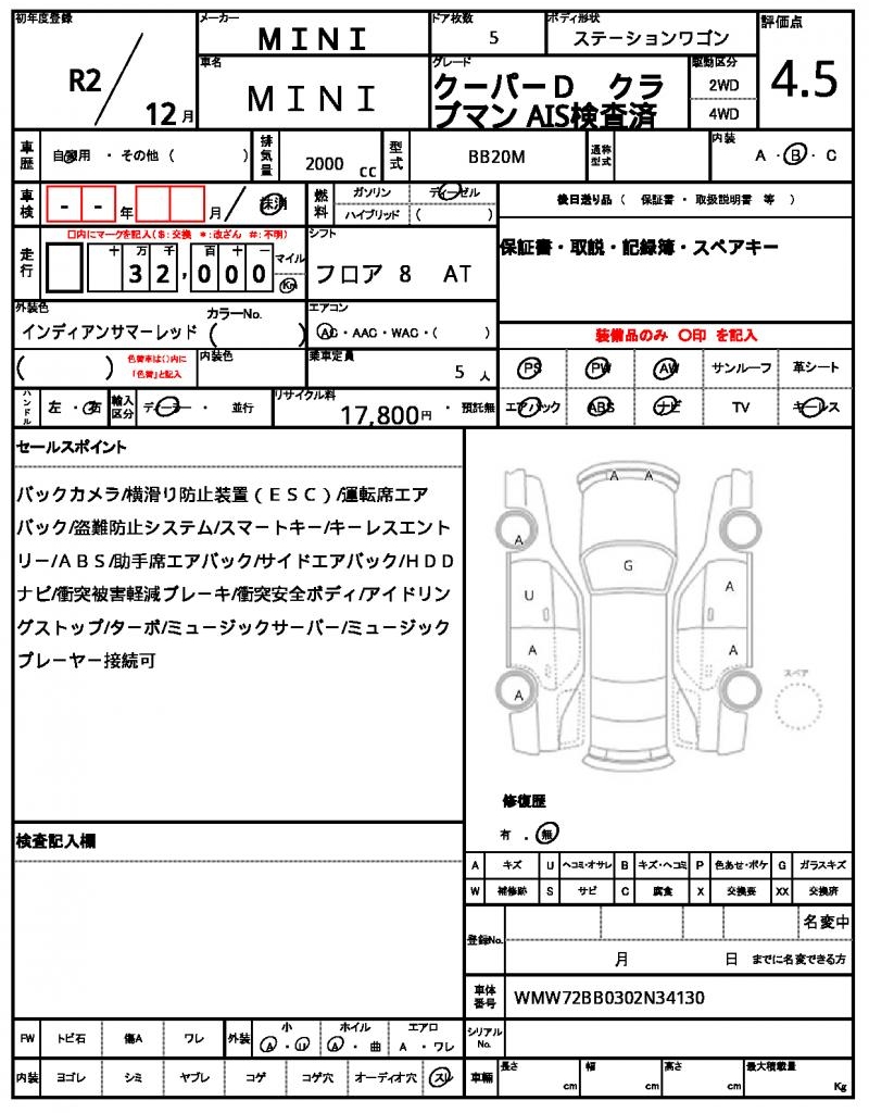 | VIN/Serial No. | WMW72BB0302N34130 |