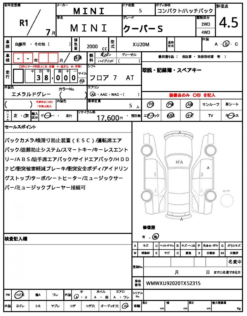 VIN/Serial No. WMWXU92020TX52315