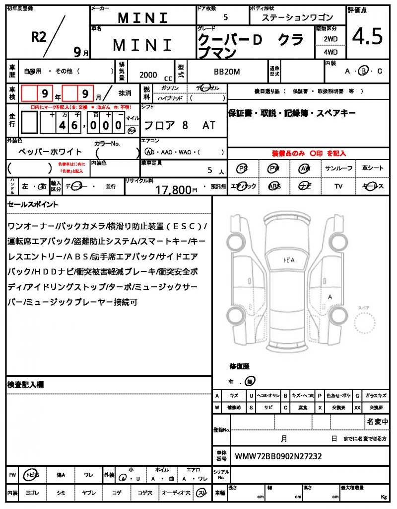 VIN/Serial No. WMW72BB0902N27232