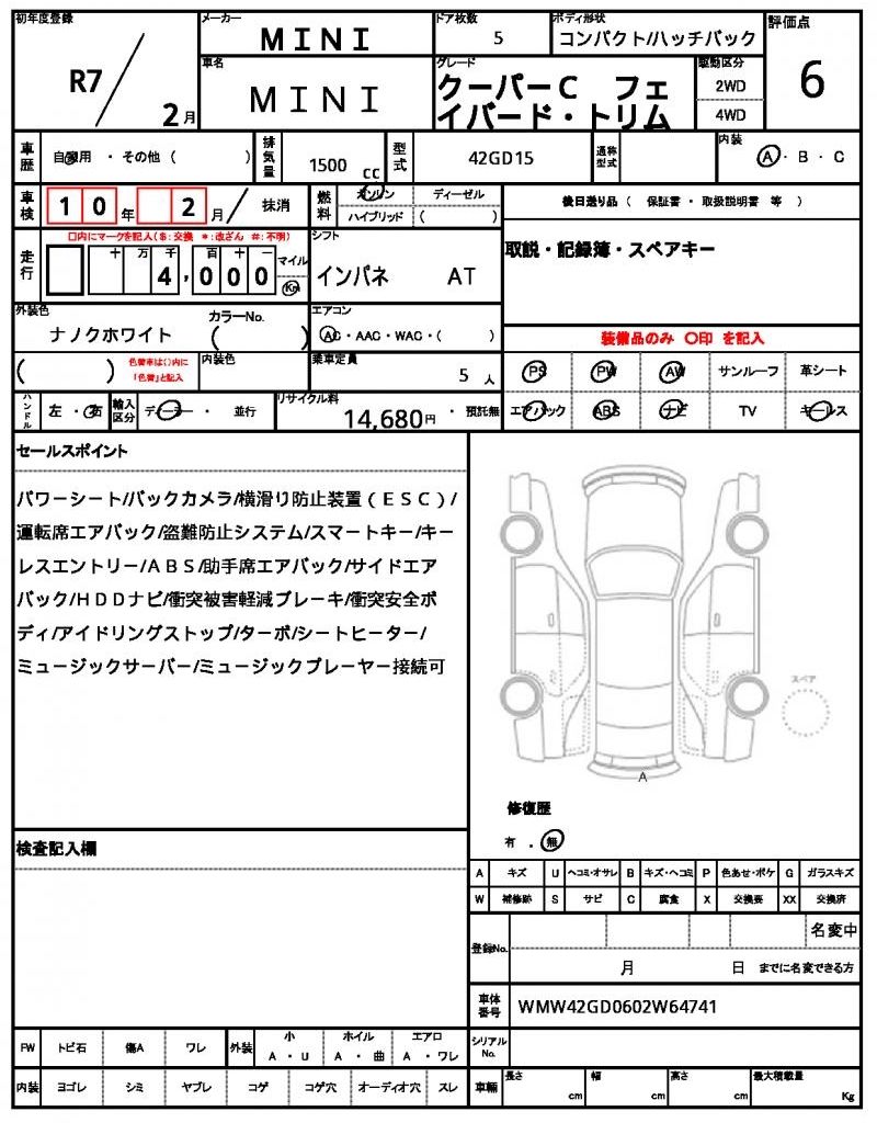 | VIN/Serial No. | WMW42GD0602W64741 |