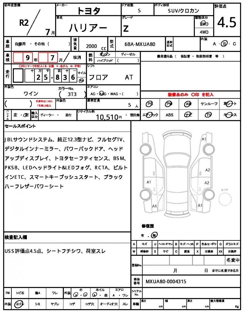 | VIN/Serial No. | MXUA80-0004315 |