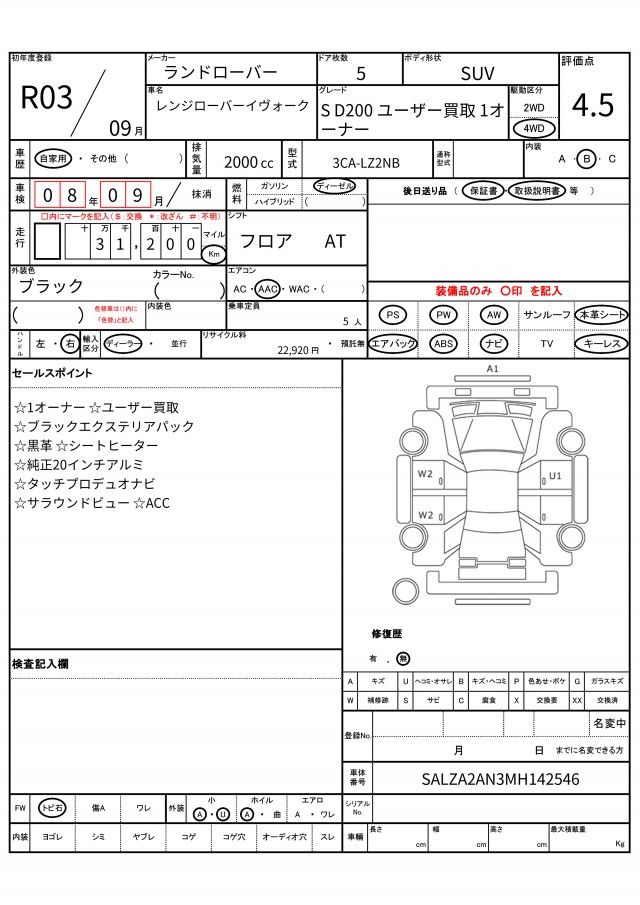 VIN/Serial No. SALZA2AN3MH142546