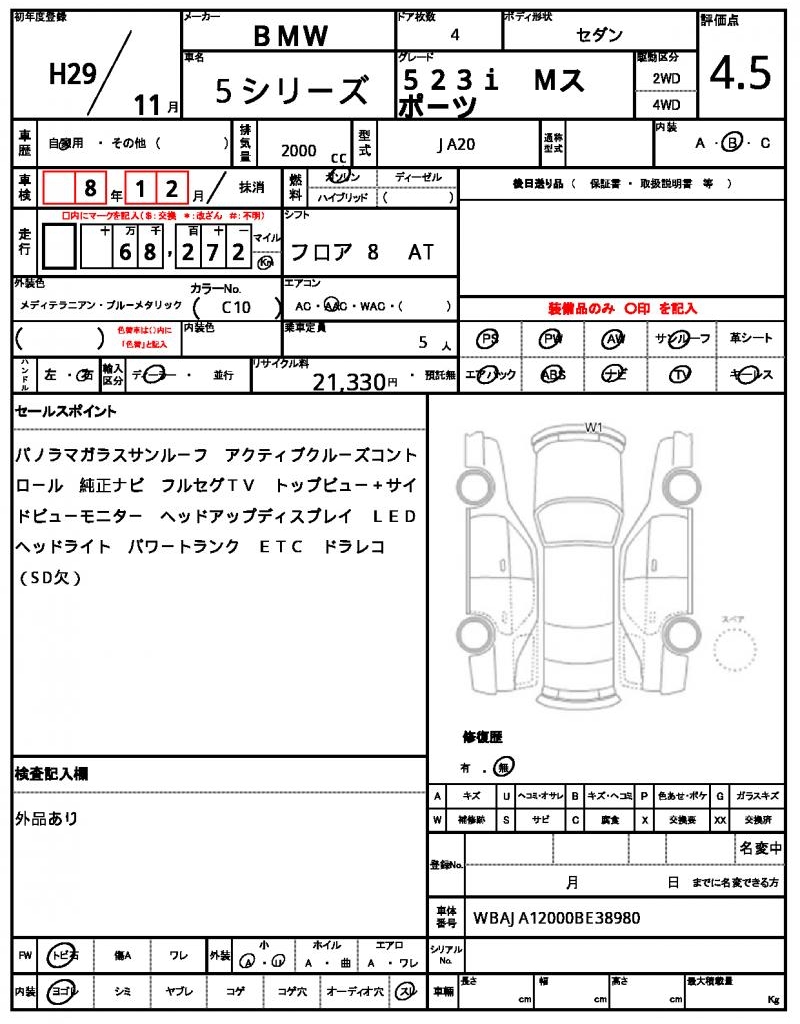 VIN/Serial No. WBAJA12000BE38980