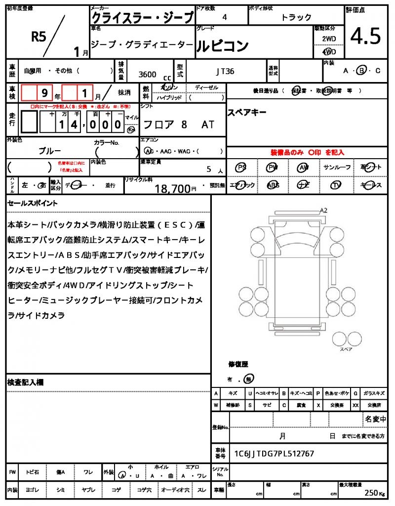 | VIN/Serial No. | 1C6JJTDG7PL512767 |