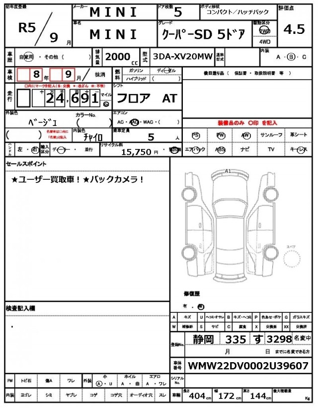 VIN/Serial No. WMW22DV0002U39607