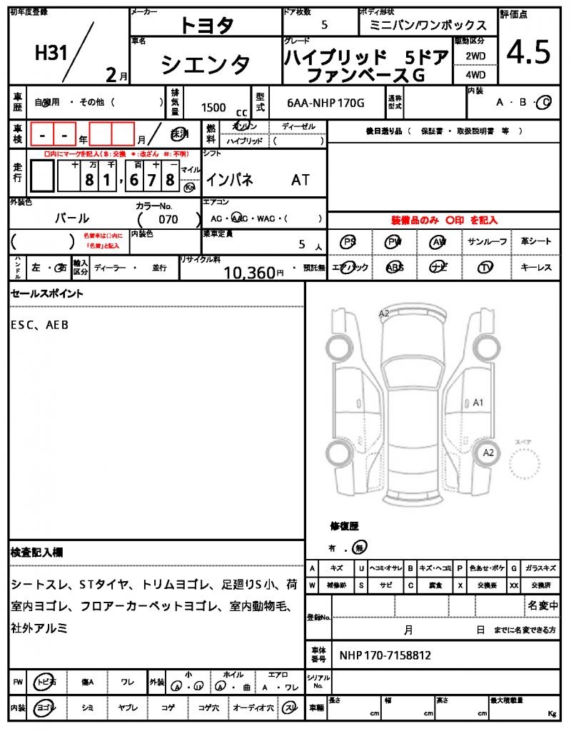 | VIN/Serial No. | NHP170-7158812 |