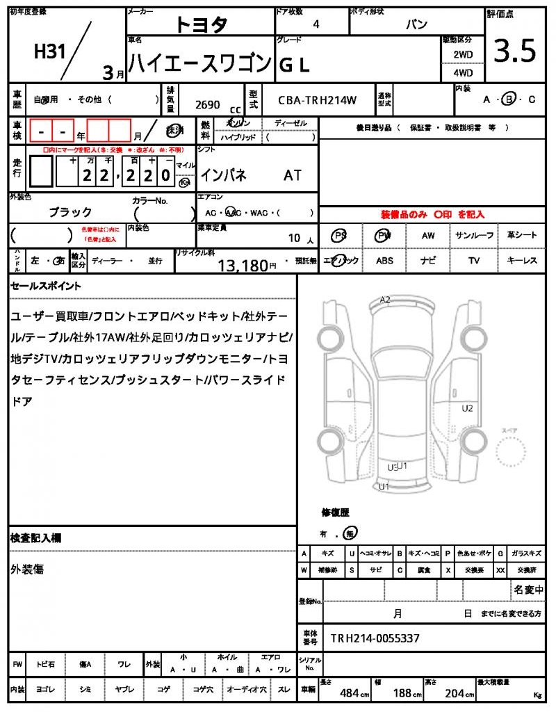 | VIN/Serial No. | TRH214-0055337 |