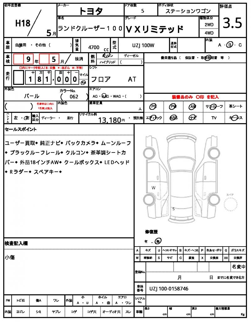 | VIN/Serial No. | UZJ100-0158746 |