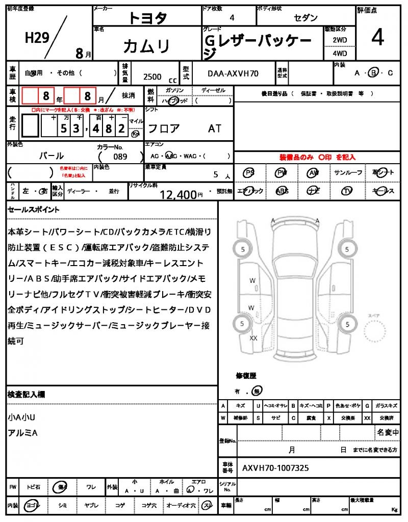 | VIN/Serial No. | AXVH70-1007325 |