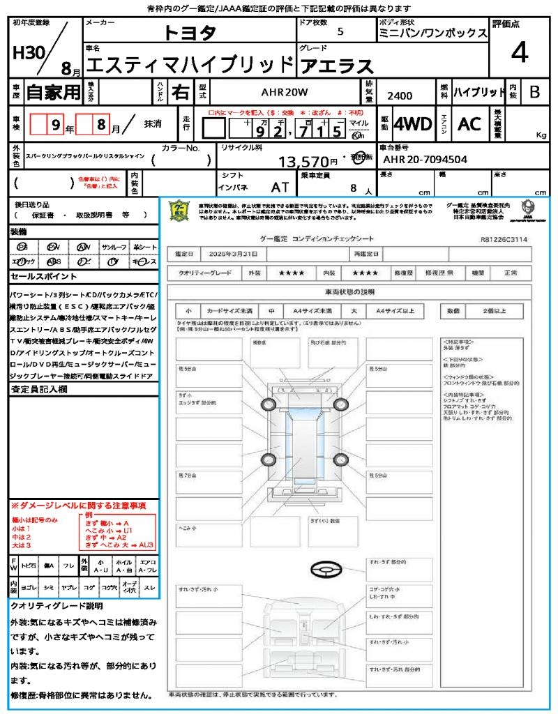 VIN/Serial No. AHR20-7094504