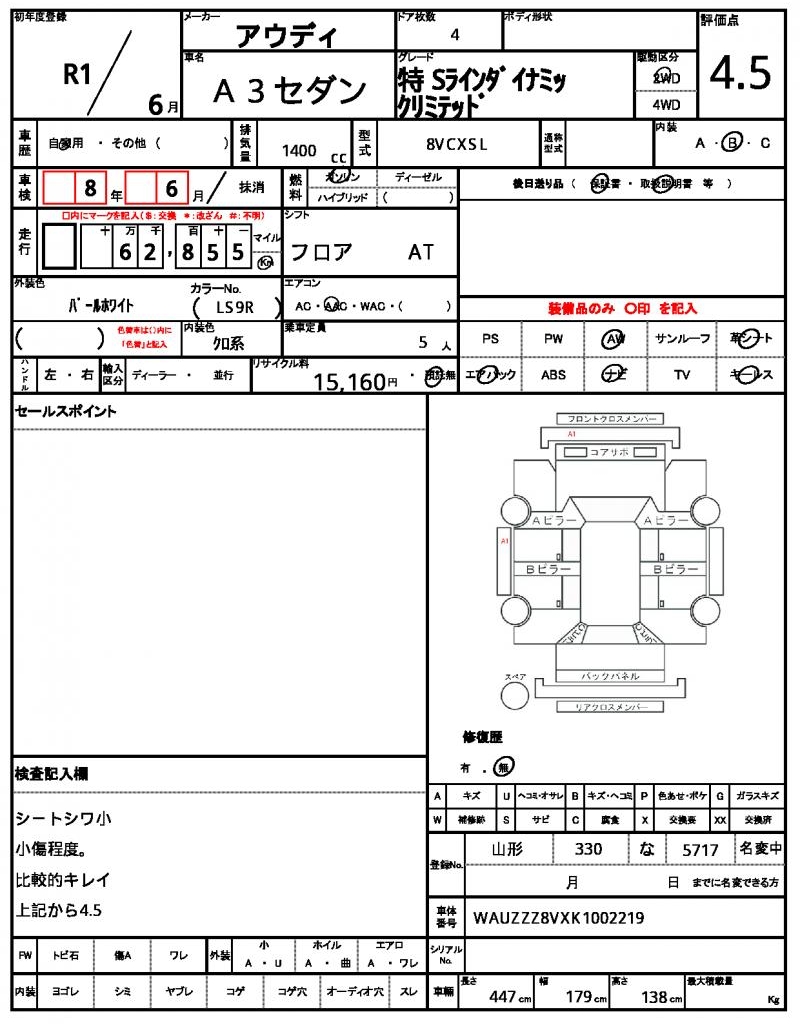| VIN/Serial No. | WAUZZZ8VXK1002219 |