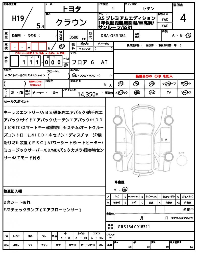 | VIN/Serial No. | GRS184-0018311 |