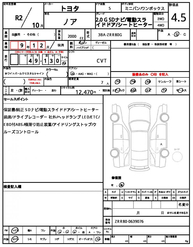 | Model code | 3BA-ZRR80G |