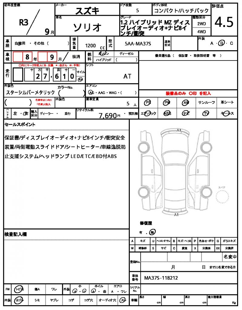 | VIN/Serial No. | MA37S-118212 |