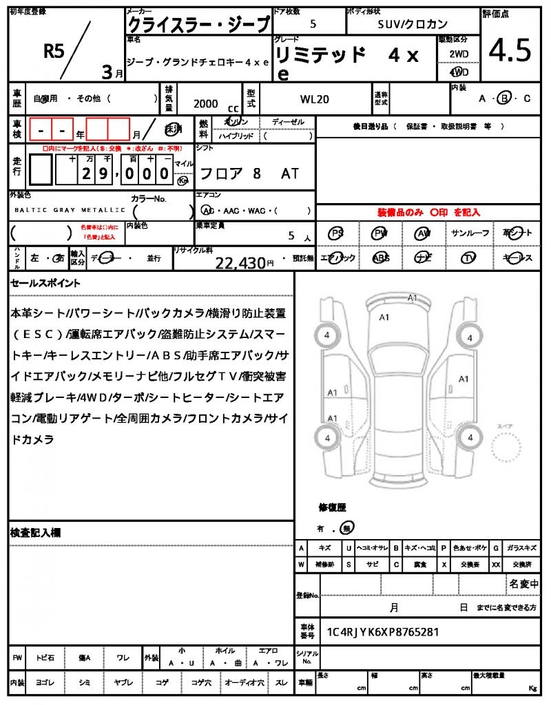 | VIN/Serial No. | 1C4RJYK6XP8765281 |
