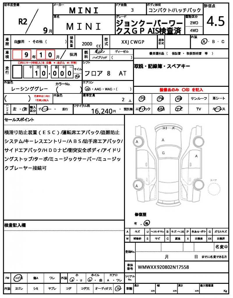 VIN/Serial No. WMWXX920802N17558