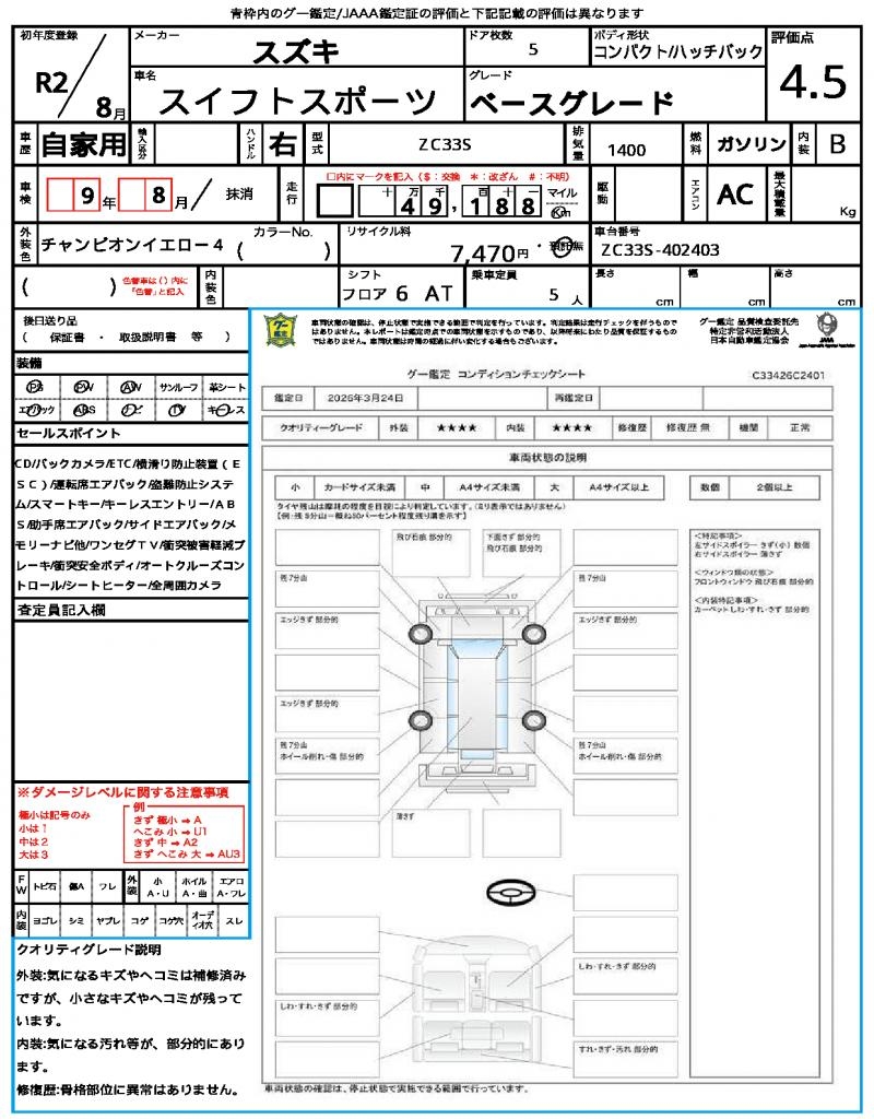 | VIN/Serial No. | ZC33S-402403 |
