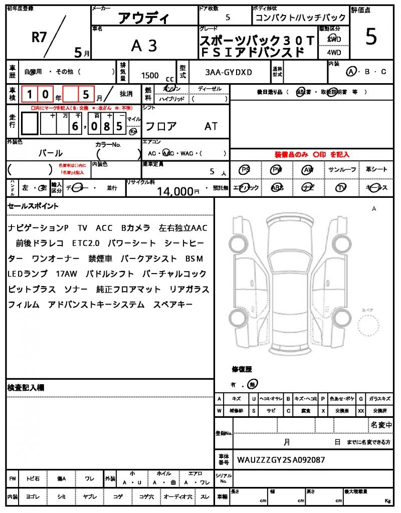 | VIN/Serial No. | WAUZZZGY2SA092087 |