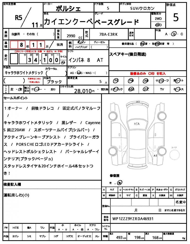 VIN/Serial No. WP1ZZZ9YZRDA46931