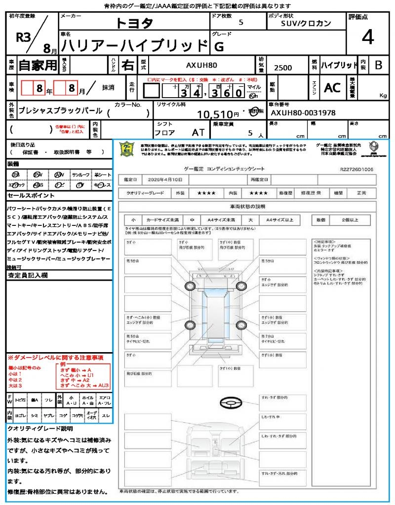 | VIN/Serial No. | AXUH80-0031978 |