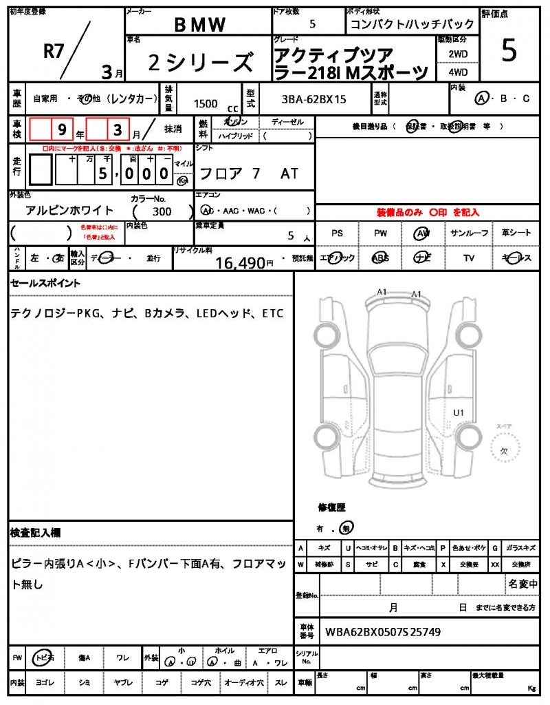 | VIN/Serial No. | WBA62BX0507S25749 |