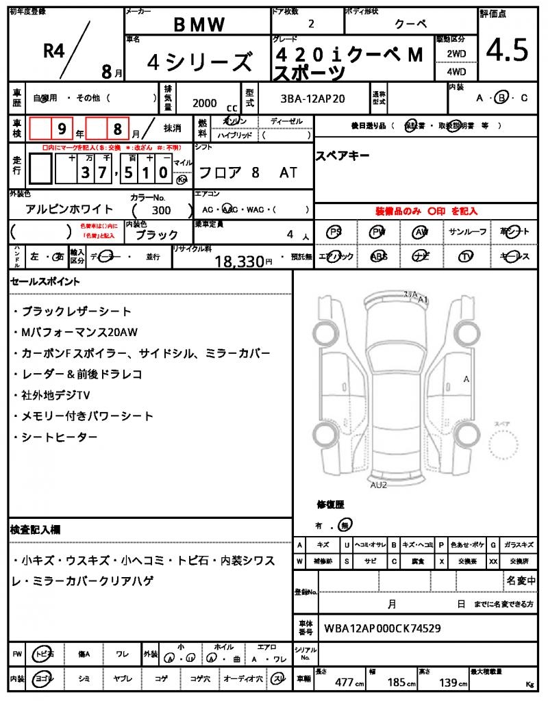 | VIN/Serial No. | WBA12AP000CK74529 |