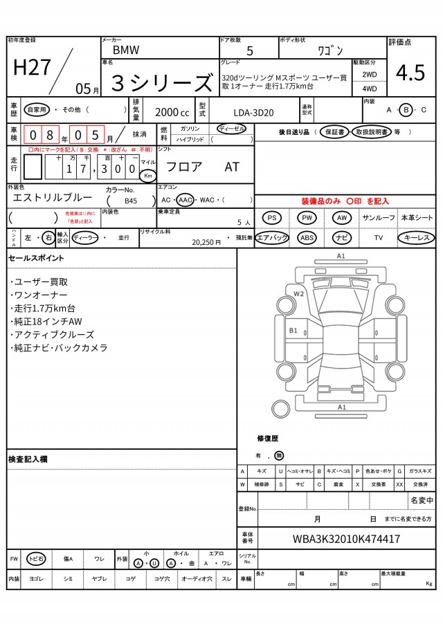 | VIN/Serial No. | WBA3K32010K474417 |