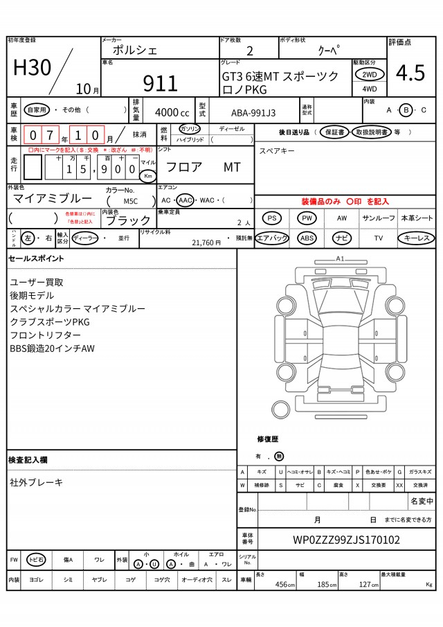 VIN/Serial No. | WP0ZZZ99ZJS170102 |