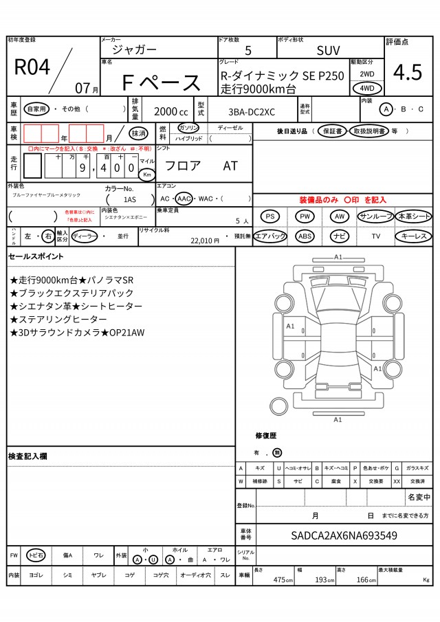 VIN/Serial No. | SADCA2AX6NA693549 |