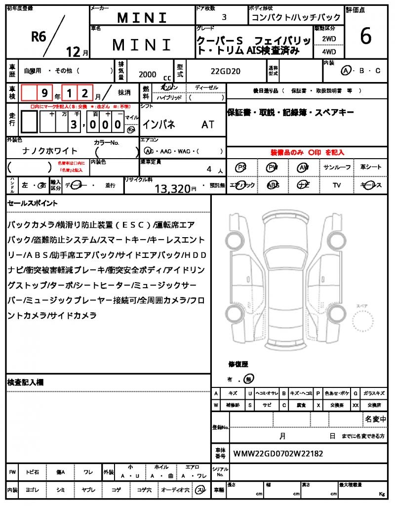 VIN/Serial No. | WMW22GD0702W22182 |