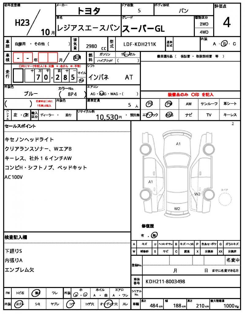 VIN/Serial No. | KDH211-8003498 |