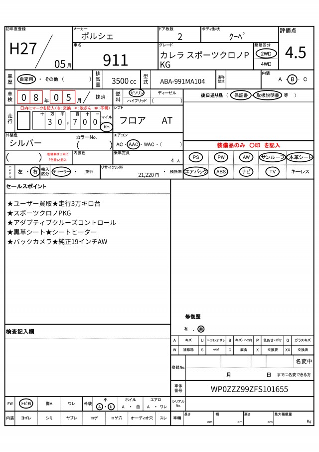 VIN/Serial No. | WP0ZZZ99ZFS101655 |