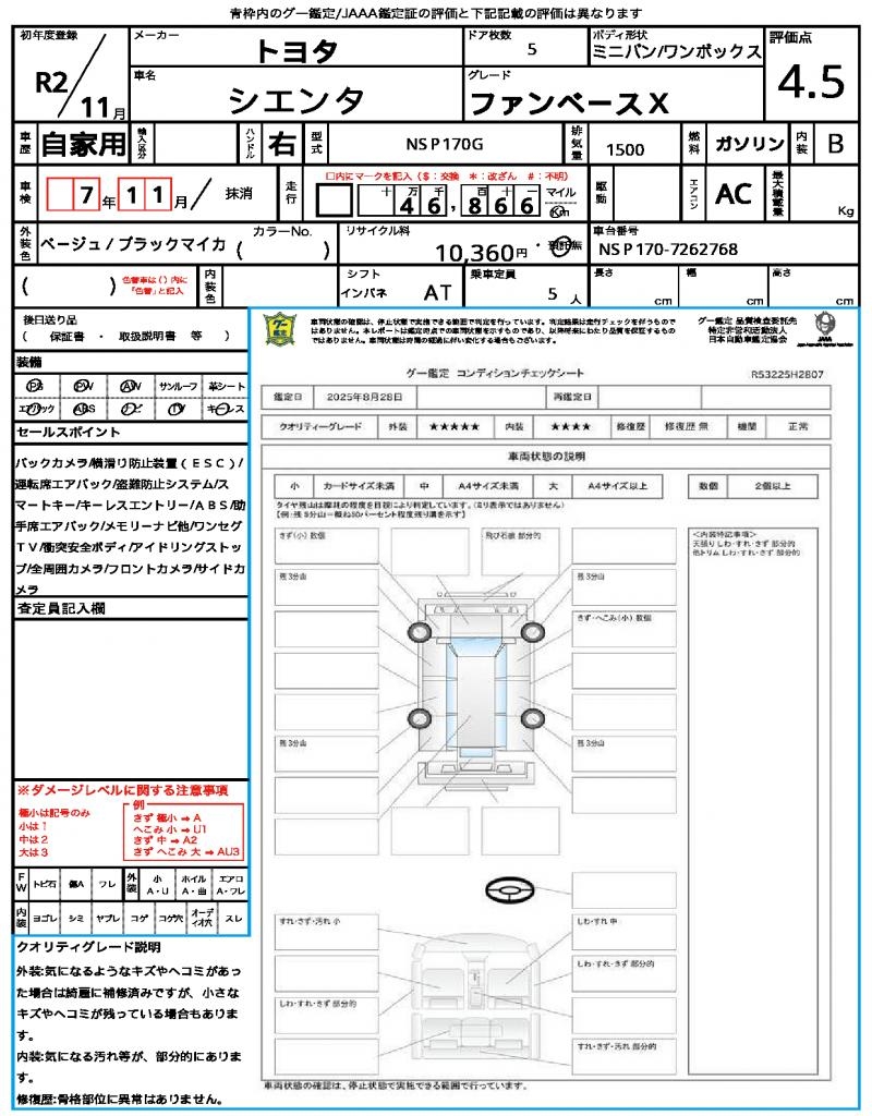 VIN/Serial No. | NSP170-7262768 |