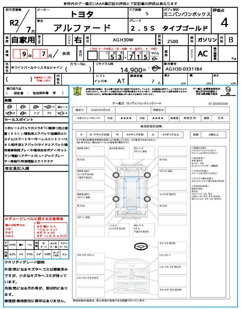 VIN/Serial No. | AGH30-0331184 |