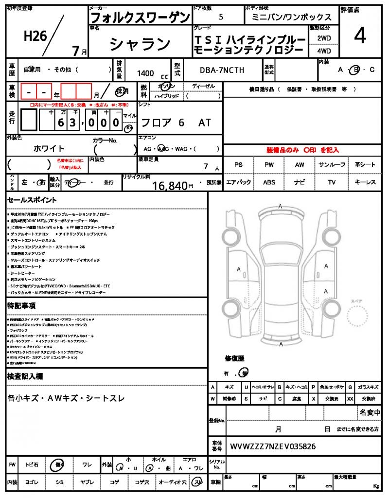 VIN/Serial No. | WVWZZZ7NZEV035826 |