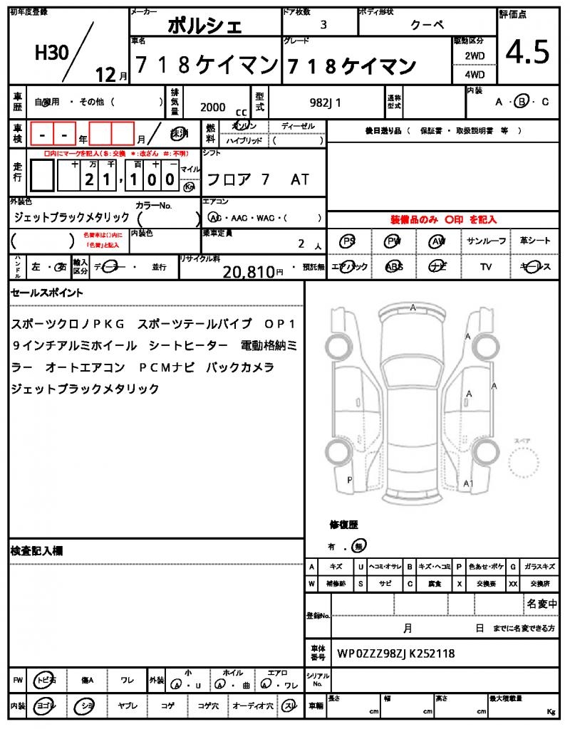 VIN/Serial No. | WP0ZZZ98ZJK252118 |