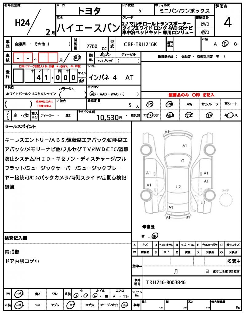 VIN/Serial No. | TRH216-8003846 |